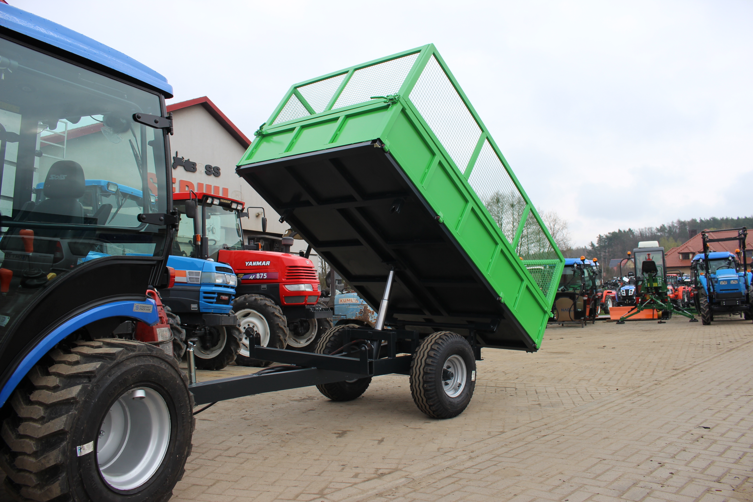 Przyczepa posiada w standardzie bogate wyposażenie. Trzystronny wywrót skrzyni ładunkowej zwiększa funkcjonalność przyczepy. Kulowy, stabilny system wywrotu, sprawdzone, wytrzymałe profile ram nośnych oraz wysokiej jakości, niezawodne i trwałe osie jezdne wyróżniają produkt wśród innych produktów na rynku.