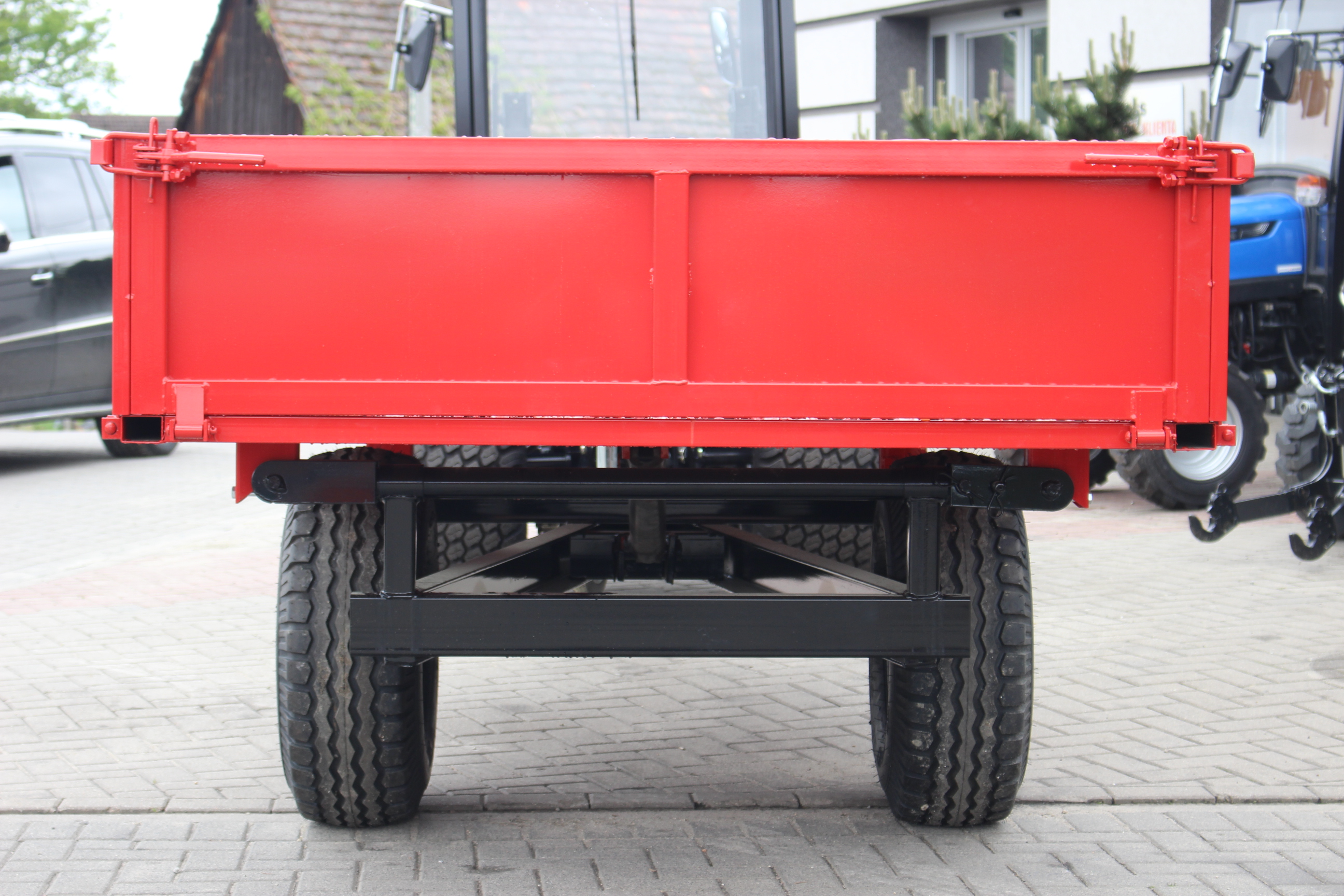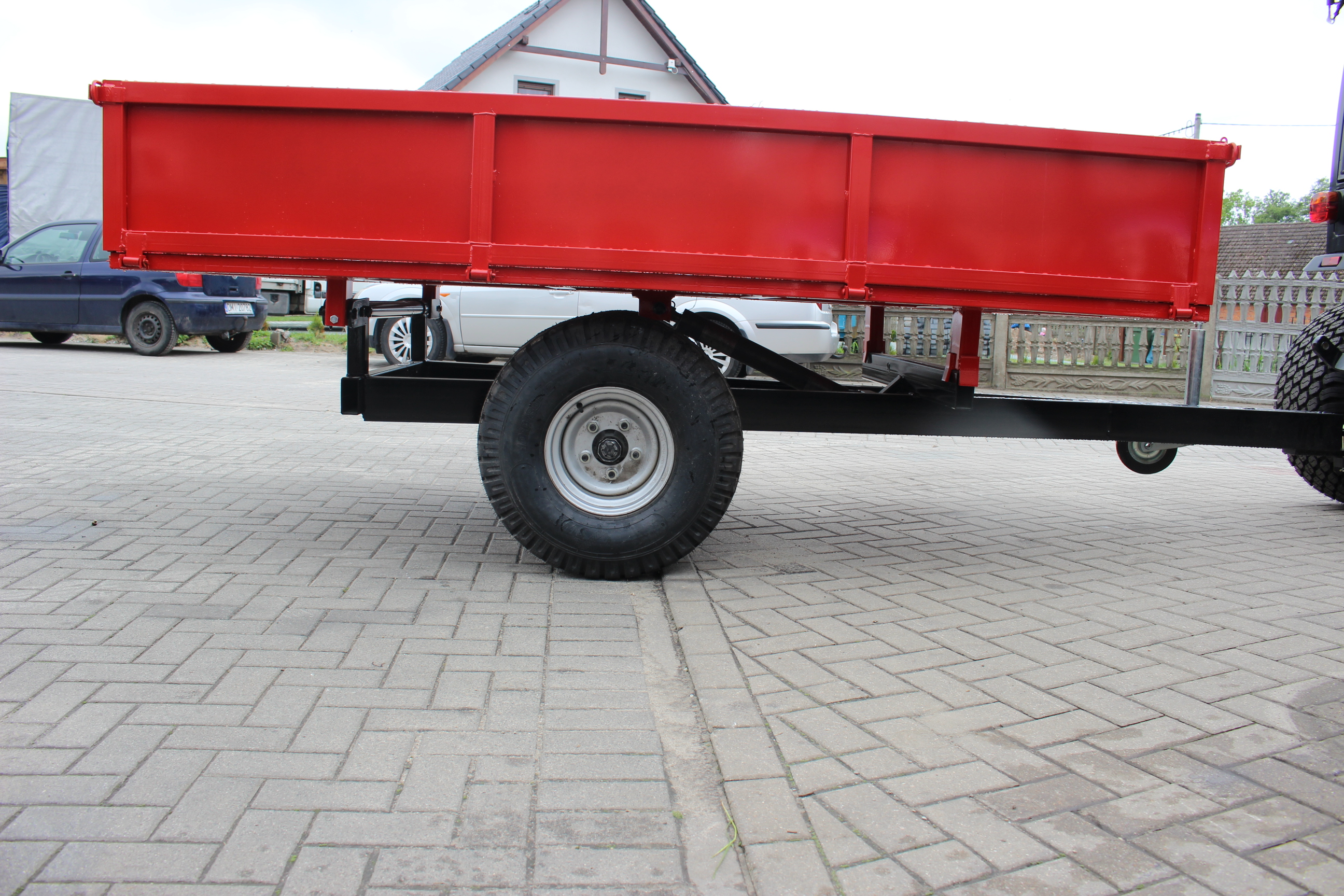 Przyczepa posiada w standardzie bogate wyposażenie. Wywrót skrzyni ładunkowej zwiększa funkcjonalność przyczepy. Stabilny system wywrotu, sprawdzone, wytrzymałe profile ram nośnych oraz wysokiej jakości, niezawodne i trwałe osie jezdne wyróżniają produkt wśród innych produktów na rynku.